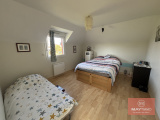 À l’étage, la mezzanine distribue : deux chambres avec placards, une salle de bain et wc.