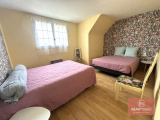 À l’étage, un palier dessert trois chambres spacieuses, une salle de bains et un WC indépendant.
