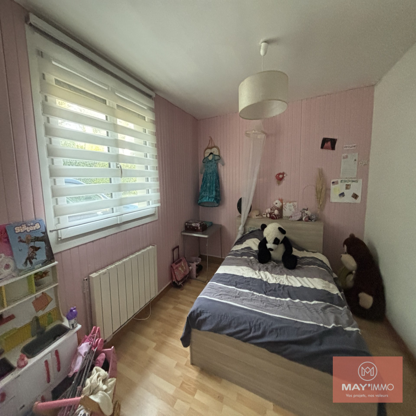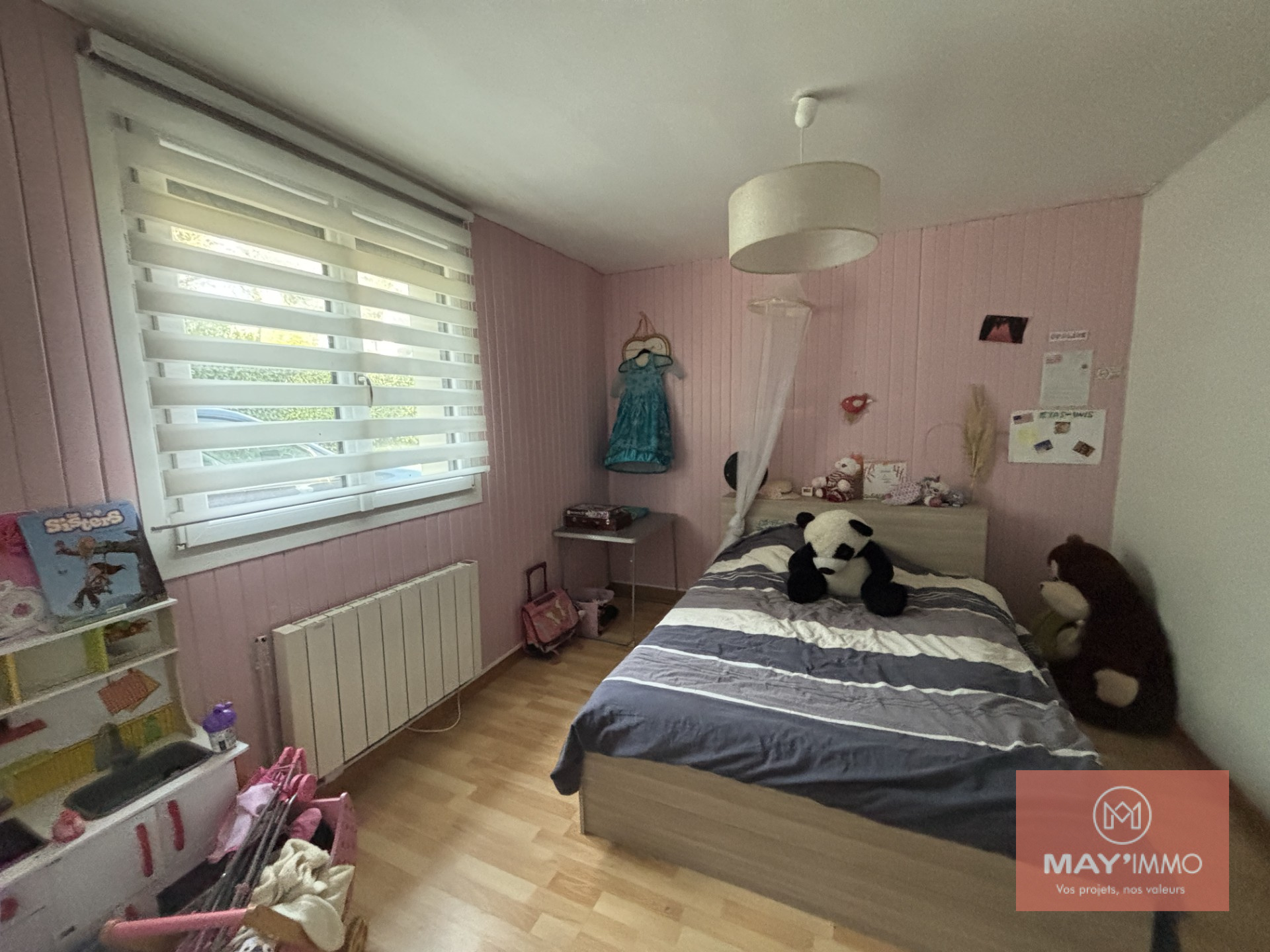 Au rez-de-chaussée : 2 chambres (11 m² et 15 m²), une salle d’eau et un WC séparé.