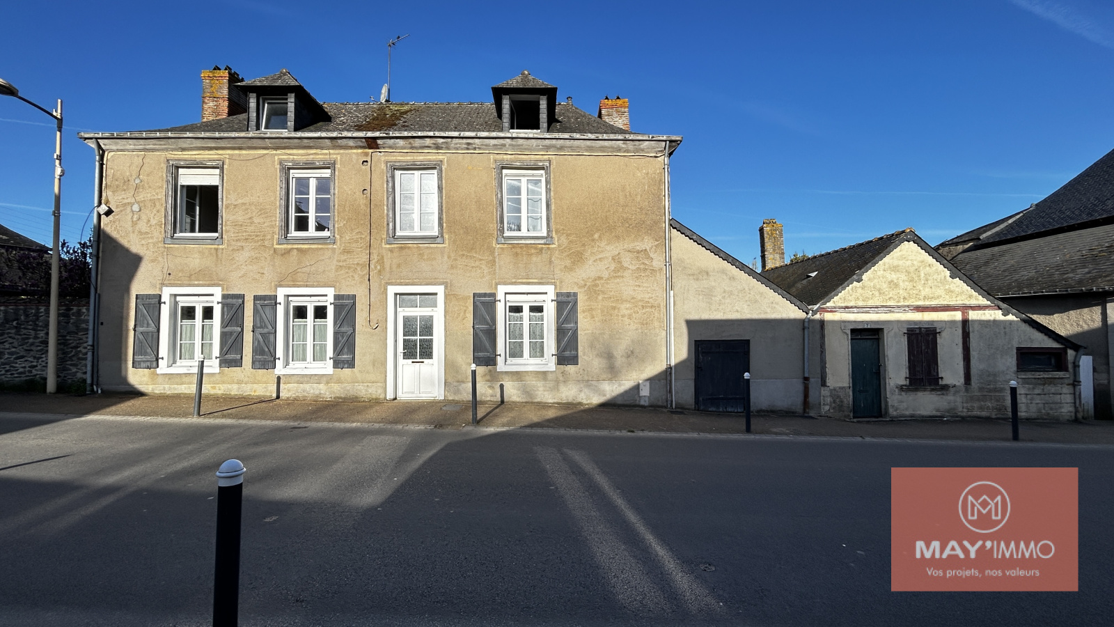 L’agence MAY'IMMO vous invite à découvrir cette agréable maison de bourg située sur la commune de Quelaines-Saint-Gault, offrant environ 116 m² habitables et de belles possibilités d’évolution.